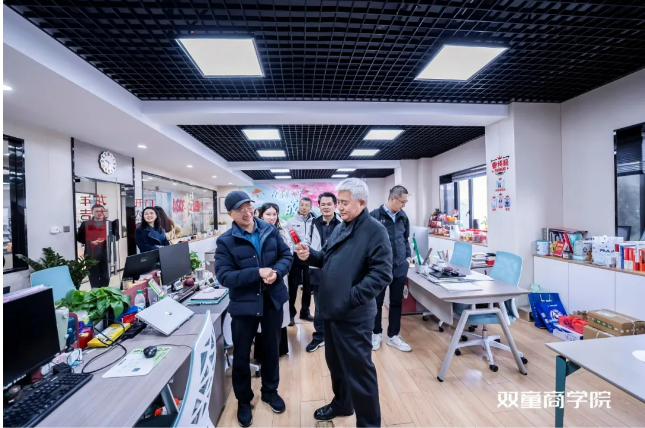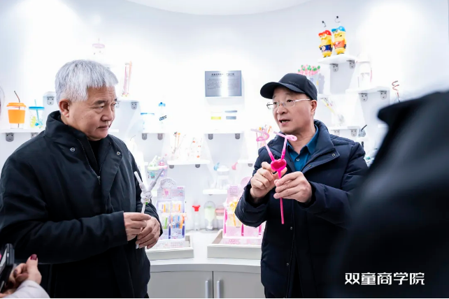 隨后便帶領張維迎教授及同學們走進雙童眾創(chuàng)空間,每走進一間辦公室,他就向大家介紹一個全新的、與吸管截然不同的業(yè)務:第五創(chuàng)業(yè)體的文化傳媒、第六創(chuàng)業(yè)體的可降解膜袋、第八創(chuàng)業(yè)體的文創(chuàng)產(chǎn)品、第十四創(chuàng)業(yè)體的財務咨詢等等。