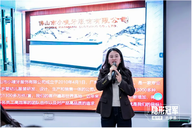 中國制造在廣東,廣東制造看佛山。因此,第二站校友們來到了思享薈三期學(xué)習(xí)委員黃新燕同學(xué)的企業(yè)——佛山市小嘜牙服飾有限公司。這家自2014年創(chuàng)立的企業(yè),專注于加工、制造、銷售:服飾、服裝、鞋、帽、襪、小飾物;貨物進(jìn)出口,技術(shù)進(jìn)出口等業(yè)務(wù)。在距離小嘜牙尚有數(shù)百米之遙的地方,校友們便遠(yuǎn)遠(yuǎn)地望見了黃新燕同學(xué)精心準(zhǔn)備的迎賓牌。而作為此次活動(dòng)的東道主,小嘜牙團(tuán)隊(duì)早已提前在幾百米開外的路邊引導(dǎo)歡迎,滿懷期待地等待著大家的到來。他們的熱情和周到,為這次相聚增添了一份特別的溫馨與隆重。踏入小嘜牙,校友們不僅親眼見證了童裝生產(chǎn)的全鏈條運(yùn)營(yíng)流程,還深入探討了小嘜牙在數(shù)智化轉(zhuǎn)型道路上的探索和實(shí)踐,特別是如何在海量款式面前,運(yùn)用信息化系統(tǒng)實(shí)現(xiàn)數(shù)據(jù)的精準(zhǔn)管理。在參觀中,黃新燕同學(xué)告訴大家在公司經(jīng)營(yíng)遇到困難時(shí),她開始主動(dòng)出來學(xué)習(xí)。2023年,她關(guān)注了樓老師一整年的視頻,今年1月參加了《自主制創(chuàng)業(yè)裂變營(yíng)》學(xué)習(xí),8月份開始了《薪酬績(jī)效訓(xùn)練營(yíng)》學(xué)習(xí),這兩個(gè)實(shí)戰(zhàn)類的課程,幫助她解決了很多的公司管理痛點(diǎn)。