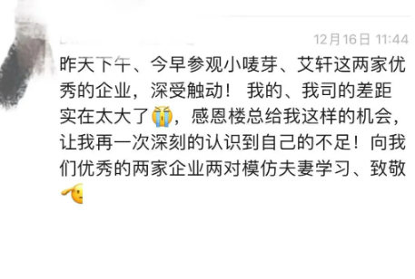 樓仲平老師還感慨道:他看到小濤身上流露出的那份堅韌不拔,仿佛映照出二十多年前的自己。同時,此次盟鵬搬遷后的嶄新面貌,不禁眼前一亮,不僅在基礎(chǔ)管理的層面實現(xiàn)了顯著的提升,現(xiàn)場管理更是煥然一新。本次來到盟鵬研學交流,所目睹的一連串驚喜變化,遠遠超出了大家的預(yù)期。希望盟鵬團隊在2025年能夠迸發(fā)出更強大的活力與激情,實現(xiàn)業(yè)績的飛躍和管理上的持續(xù)優(yōu)化!