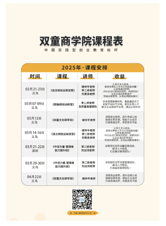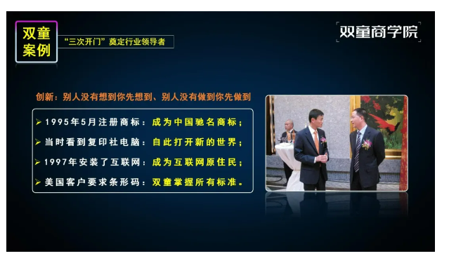 如果你也對“雙童”充滿好奇,也想讓企業(yè)成為行業(yè)的領導者,歡迎走進3月12日【雙童文化研學班】,與上百位優(yōu)秀的創(chuàng)業(yè)者一起學習!少量名額,歡迎咨詢鎖定!