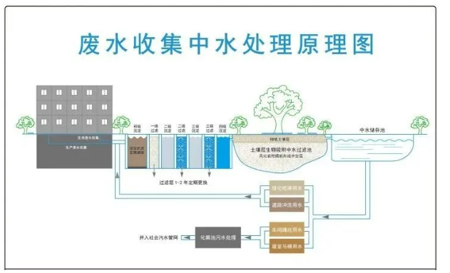 在“一號樹”完成對廢水的生物吸附之后,會自動排到池塘的下面一層,再供應(yīng)給“雙童”所有的衛(wèi)生間馬桶沖水使用,包括夏天的綠化噴淋、澆灌、道路沖洗和洗車等等。