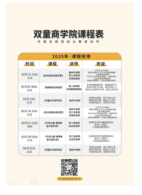 如果你也對“雙童”充滿好奇,也想賦能團(tuán)隊共同成長,歡迎走進(jìn)3月12日【雙童文化研學(xué)班】,與上百位優(yōu)秀的創(chuàng)業(yè)者一起學(xué)習(xí)!少量名額,歡迎咨詢鎖定!