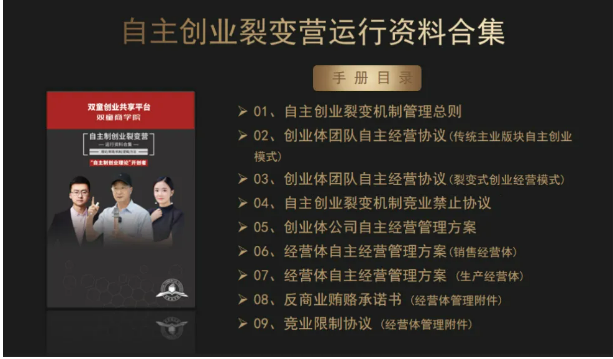 3、交付自主創(chuàng)業(yè)裂變模式的各項規(guī)則、文本、合同等書面資料