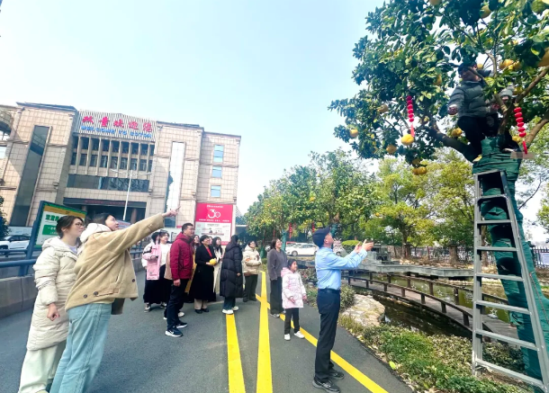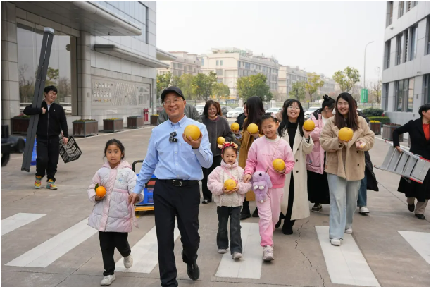 創(chuàng)始人樓仲平也為大家摘胡柚