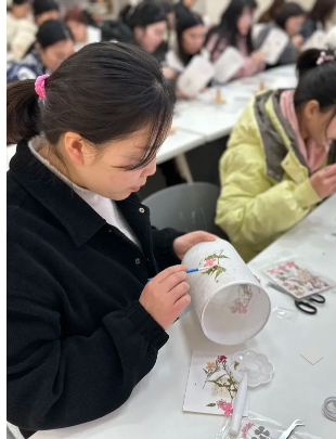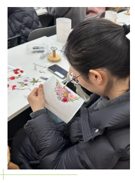 在專業(yè)導(dǎo)師的悉心引領(lǐng)下,大家盡情揮灑創(chuàng)意,靈巧地摘取色彩各異的花朵、翠綠的蕨類等春日元素,巧妙融合,將大自然的靈動(dòng)韻味捕捉并定格于潔白的絹布之上。