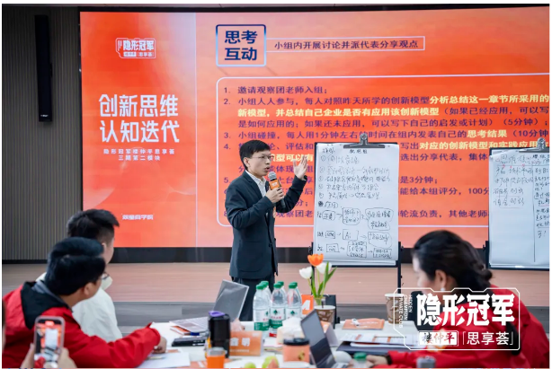 課程的后半部分,李二橋老師則重點教學(xué)“組織創(chuàng)新”和“資源配置創(chuàng)新”在雙童的具體操作。在交付過程中,他通過思維訓(xùn)練和經(jīng)典案例相結(jié)合,循序漸進地引導(dǎo)大家理解創(chuàng)新的底層邏輯和原理,進而讓學(xué)員們意識到創(chuàng)新不是一件“難以企及”的事!