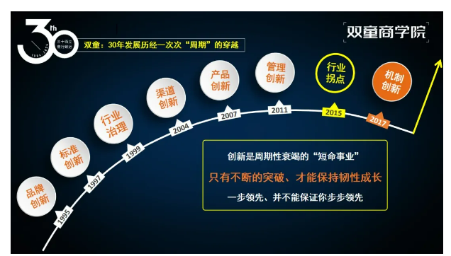 那么,“雙童”是如何能夠成功穿越一個個經(jīng)營周期,并保持有生命力、有韌性的成長的呢?一起看看創(chuàng)始人樓仲平在主題報告中怎么說。