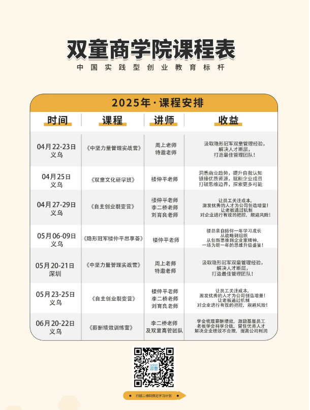其實,樓仲平老師本次的《韌商:穿越周期、韌性成長》主題分享,也是《雙童文化研學班》下半場課程的精簡版,原版內(nèi)容將近3個小時,故事更精彩、細節(jié)更豐富!