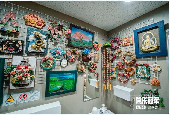 此外,車間內(nèi)沒有絲毫多余的雜物,工序之間通過透明簾子分隔成獨(dú)立空間,而貨架上的物品則用窗簾遮擋,整體環(huán)境顯得整齊干凈、井然有序,體現(xiàn)了小而精致的美學(xué)理念。