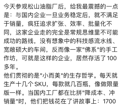 與國內(nèi)企業(yè)一旦業(yè)務(wù)穩(wěn)定后,就不滿足于銷量,瘋狂追求擴(kuò)張、效率、批量化不同,這家企業(yè)走的完全是常規(guī)思維里不可能成功的路線,沒有想象中的科技感流水線、寬敞碩大的車間,反而像一家"佛系"的手工作坊,可就是這樣的企業(yè),居然存活了100多年。