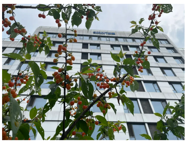 不只是屋頂花園,水池邊、宿舍樓下和小花園,雙童每個(gè)角落都被樓總栽上了櫻桃樹,讓員工們?cè)诠ぷ髦?,輕松實(shí)現(xiàn)“櫻桃自由”~