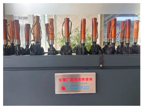 但是面對狂風(fēng)暴雨時,“雙童人”卻不會有這樣的苦惱。在雙童的廠區(qū)內(nèi),放置了超過300把流動傘,確保每一位員工都不會遭受雨淋。更令人稱道的是,這些雨傘始終保持著整齊的陣列,無需專人管理便能在雨后全部歸位。這背后的原因是什么呢?