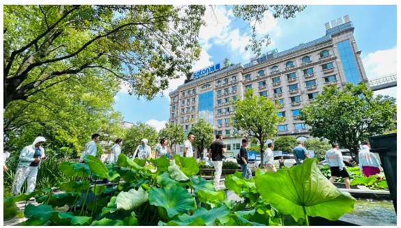 夏天的傍晚,員工們?nèi)齼沙扇郝綐蚺?,沉醉荷池美景。?tīng)瀑布潺潺,看斜陽(yáng)映水,魚(yú)兒游弋,簡(jiǎn)直美得像一幅畫(huà)~