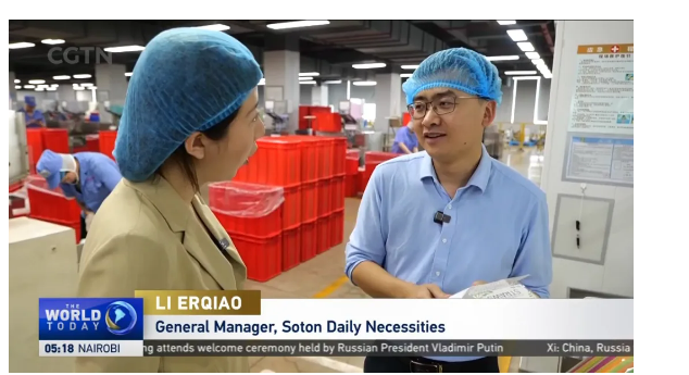 央視CGTN記者也走進雙童,實地采訪董事長樓仲平和總經(jīng)理李二橋。巧合的是,采訪當(dāng)天,雙童的美國訂單正在重啟生產(chǎn)發(fā)貨計劃。