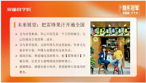 雷鋒老師告訴同學(xué)們,截至目前,“雷鋒果汁”已成功開設(shè)了七家分店,且其業(yè)務(wù)持續(xù)繁榮的背后,主要得益于四大核心推動(dòng)因素: