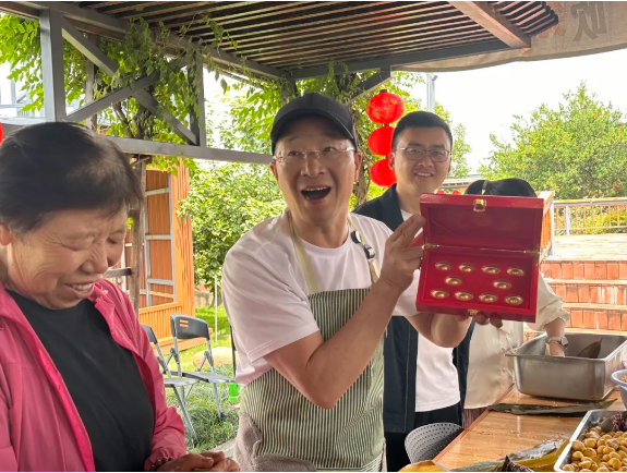 正好也到飯點了,大家也絲毫不拘謹,大口大口吃著粽子,不到一分鐘的時間,現(xiàn)場幾乎同時出現(xiàn)了好幾個吃到黃金粽的幸運星!