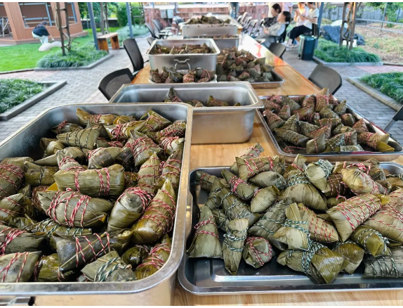 今年后勤部門也是早早地為大家準備好了各種粽子餡料,肥糯五花肉、寓意高中的狀元豆… 統(tǒng)統(tǒng)安排上啦!滿足五湖四海的雙童人口味,全都真材實料看得見!