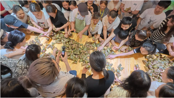 一切準備就緒后,大家屏息以待,目光如炬鎖定目標。一聲令下,大家就抓住了自己的心儀粽子,第一個粽子到手全程只花了0.1秒!