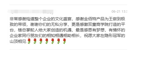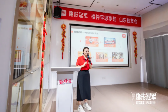 在專題分享環(huán)節(jié),燴道運營總經理吳春云先是介紹了與雙童的結緣之路。2024年在山東淄博的一次活動上,吳總首次聽到樓仲平老師的分享,被他的經營理念所深深吸引,先后帶領公司小伙伴超30人次走進雙童研學以及深度學習自主創(chuàng)業(yè)裂變機制。