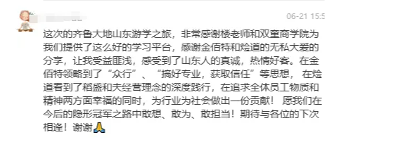 “弟子班”永不畢業(yè),持續(xù)成長!6月20-21日,隱形冠軍樓仲平思享薈舉行山東校友會研學專場,1-5期“弟子班”中的40多位同學一同成行。