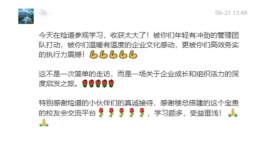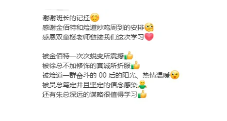 從燴道辦公區(qū)域墻壁上的核心價值觀,到生產一線精準執(zhí)行的管理細則,大家直觀感受到了“以奮斗者為本”的理念如何滲透到企業(yè)肌理、融入日常運營;通過觀摩一線車間的操作與管理流程,研學標準化在提高生產效率、保障產品品質中的重要作用。