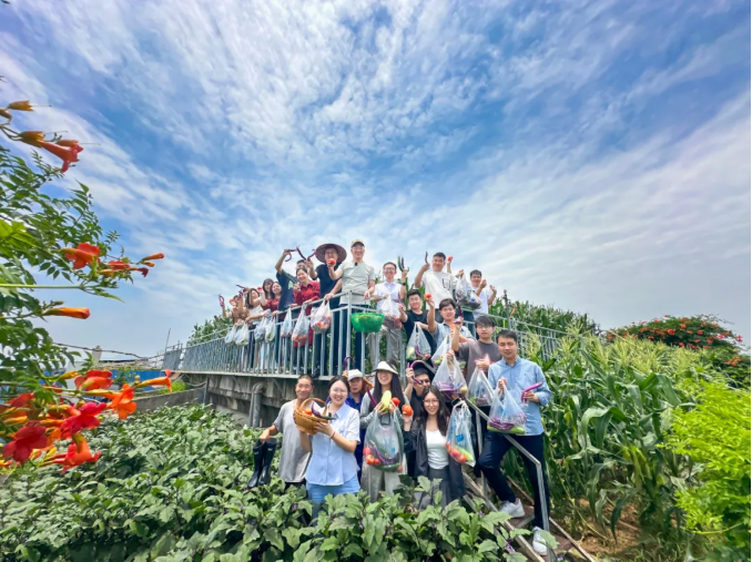 在“雙童”,屋頂也是員工在工作之余休閑娛樂的好去處。員工們可以穿梭在濃蔭密布的果園之間,品嘗到四季的瓜果;也可以走進屋頂菜園,南瓜、黃瓜、茄子和絲瓜等蔬菜掛滿枝頭,豐收時節(jié)“雙童人”身處工業(yè)區(qū)也能體會別樣的田園樂趣!