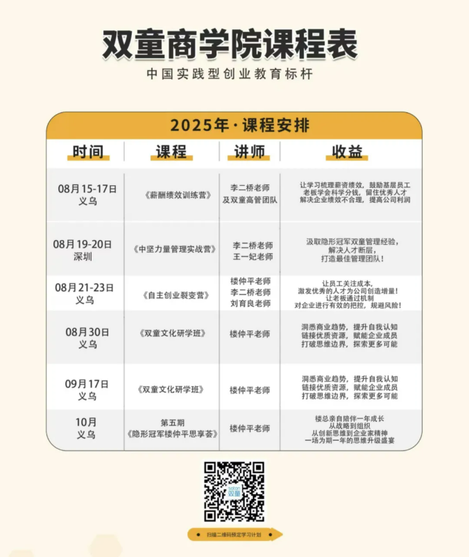 如果你也對“雙童”充滿好奇,也想賦能團(tuán)隊(duì)共同成長,歡迎走進(jìn)8月30日【雙童文化研學(xué)班】,與上百位優(yōu)秀的創(chuàng)業(yè)者一起學(xué)習(xí)!少量名額,歡迎咨詢鎖定!