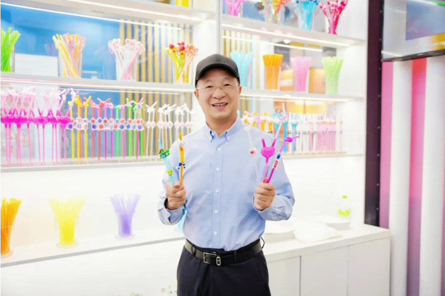 與展位上琳瑯滿目的吸管合影