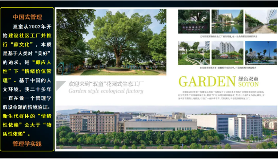 同樣,雙童花園式社區(qū)工廠的建設(shè),其本質(zhì)上也是基于人類對“美好”的追求,是“順應(yīng)人性”下的“情緒價值管理”。樓仲平希望通過打造人與自然、生產(chǎn)與生活和諧共生的空間,以增強(qiáng)員工的歸屬感和幸福感,從而激發(fā)員工的善意。