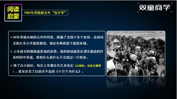 他分享了早期自己80年代做“包子軍”時(shí)養(yǎng)成碎片化閱讀習(xí)慣的故事。在艱苦求生的惡劣環(huán)境下,書(shū)籍成了生活?yuàn)A縫中唯一的甜。不再為生存發(fā)愁后,雜志書(shū)籍成了他行囊里的必備品,碎片化的閱讀在不知不覺(jué)中為他貧瘠的知識(shí)體系埋下了種子。