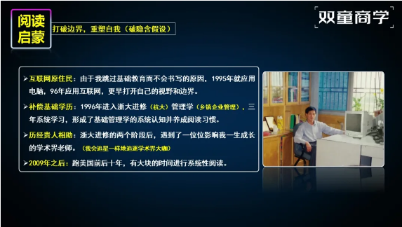 盡管基礎(chǔ)教育有所欠缺,他積極彌補(bǔ)知識(shí)短板:1995年啟用電腦,1996年接入互聯(lián)網(wǎng)開(kāi)拓全球視野,同年進(jìn)入浙江大學(xué)系統(tǒng)學(xué)習(xí)企業(yè)管理,構(gòu)建管理認(rèn)知并養(yǎng)成閱讀習(xí)慣。此后,2009年起頻繁赴美的十年間,他通過(guò)深度閱讀實(shí)現(xiàn)了從碎片化學(xué)習(xí)到系統(tǒng)性思考的轉(zhuǎn)變。