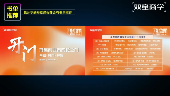 近期,雙童創(chuàng)始人樓仲平受邀出席“更新與答案:我的2025書(shū)單”總裁讀書(shū)會(huì)年終演講系列活動(dòng),與著名企業(yè)家寧高寧同臺(tái),為參會(huì)嘉賓帶來(lái)年終大課的主題分享之一《答案:閱讀推動(dòng)我創(chuàng)業(yè)成長(zhǎng)》,結(jié)合自身創(chuàng)業(yè)實(shí)踐經(jīng)歷,分享了關(guān)于管理學(xué)、經(jīng)濟(jì)學(xué)、哲學(xué)、自然科學(xué)等方面的閱讀成長(zhǎng)經(jīng)歷。