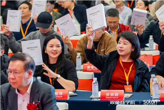 隨后,雙童創(chuàng)業(yè)共享平臺的核心管理團隊共同登臺,在全體與會者的倒數(shù)聲中,2025版雙童經(jīng)營哲學(xué)被正式點亮發(fā)布,這本文化手冊清晰定義了雙童為何出發(fā)以及去向何方!