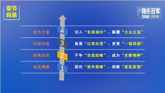 為幫助“弟子班”學(xué)員深入理解這一戰(zhàn)略,樓老師融匯創(chuàng)新理論與豐富案例,構(gòu)建出從認(rèn)知到實(shí)踐的完整框架。課程分為四個(gè)循序漸進(jìn)的章節(jié):底層溯源—戰(zhàn)略定位—向前向前—成為王者。