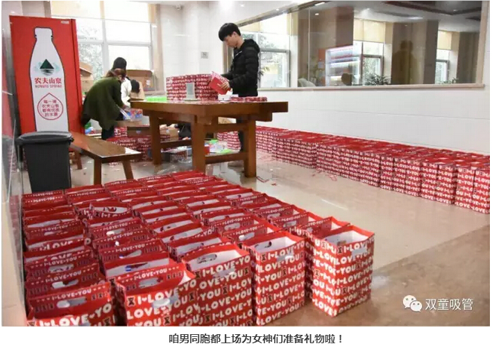 一套套紅彤彤的禮物套裝,男同胞們就是想拿,也不好意思呀!哈哈,看我們的女神們排著隊高興的樣子,別急別急,留一套給吸管妞哈!