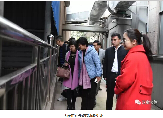 參觀的第一站,是我們的節(jié)能降耗系統(tǒng)。大家一起參觀了雨水收集處、垃圾分類站等地。參觀到我們的中水回用池過濾系統(tǒng)時,在看到地面上的一塊塊玻璃后,大家都十分好奇。吸管妞介紹道:其實,這下面埋著的是過濾芯,用來過濾廢水,是廢水循環(huán)過程中的一個步驟。” 大家聽后,對雙童這種生態(tài)循環(huán)的做法都十分認(rèn)可!