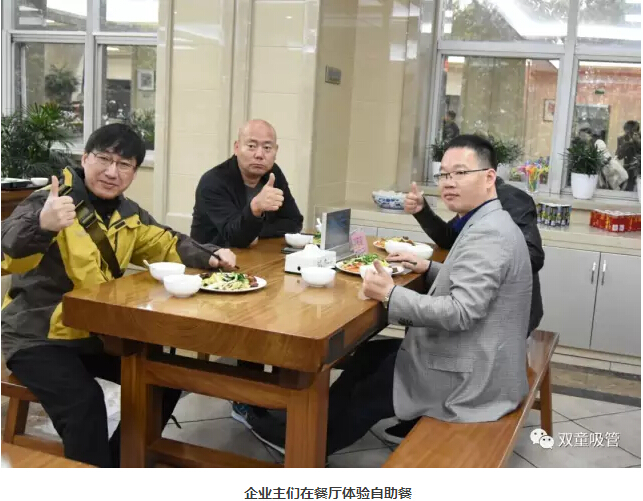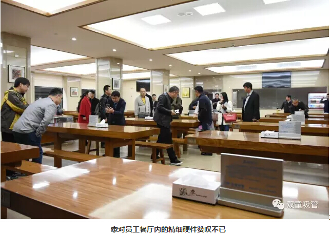 第二站是五星級員工餐廳,吸管妞也介紹道:餐廳內(nèi)的設(shè)施都配備了最好的硬件,加飯餐車也是由樓總親自設(shè)計的,就是為了讓員工們都能吃到熱乎乎的飯!另外員工的餐飲都是三菜一湯的標(biāo)配,員工們使用后的所有碗筷都由食堂阿姨進(jìn)行清洗和消毒。大家在看到如此精細(xì)的就餐環(huán)境和硬件后都十分欣慰,紛紛贊嘆:員工們能在這么好的環(huán)境里就餐真幸福!
