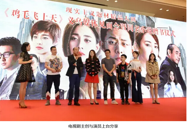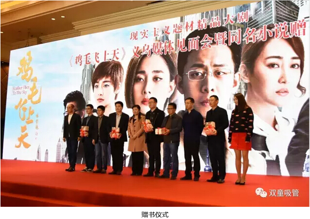 電視劇《雞毛飛上天》講述了義烏改革開放以來的發(fā)展歷程,凸顯了義烏人民自強不息、勇于開拓的奮斗精神。在此次見面會上也舉行了《雞毛飛上天》同名小說的贈書儀式,市政協(xié)副主席王迎、導演余丁、編劇申捷、主演陶澤如和高姝瑤將同名小說《雞毛飛上天》贈與教育局、檔案局、圖書館、商城集團和義商總會,將浙商精神傳遞和延續(xù)下去。