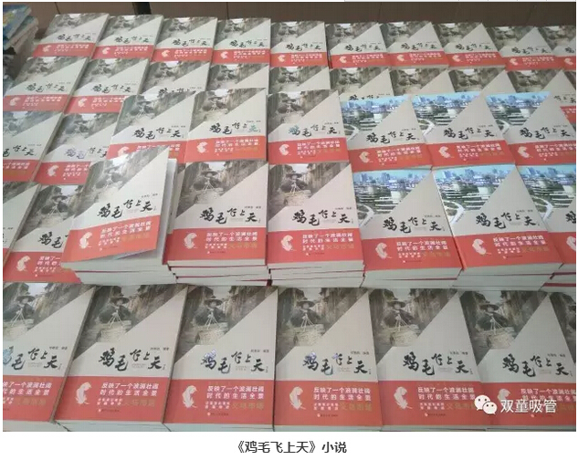 其實,在這背后還有一個小故事!當《雞毛飛上天》小說出版在即,作者何賽陽老師卻一直沒有找到滿意的封面,直到有一天,他看到了“雙童”微信平臺發(fā)布的樓總重搖撥浪鼓的文章,眼前一亮,對呀,這不就是他一直苦苦尋找的封面照片嗎!他立即聯(lián)系到當家人樓總并闡明用意,樓總也是非常爽快地答應了他的請求,也就有了這本小說的精美封面啦!