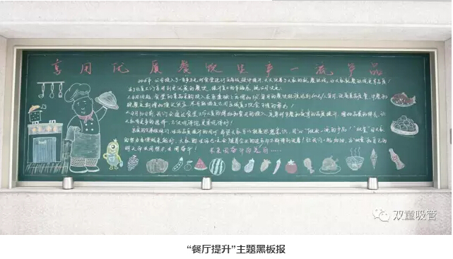 “雙童”員工餐廳配備了五星級的設(shè)施,有了硬件的保障才能確保餐飲的持續(xù)提升!為了讓員工們對此次餐飲提升有更全面的了解,我們文宣科也特地出了一期以餐飲提升為主題的黑板報呢!