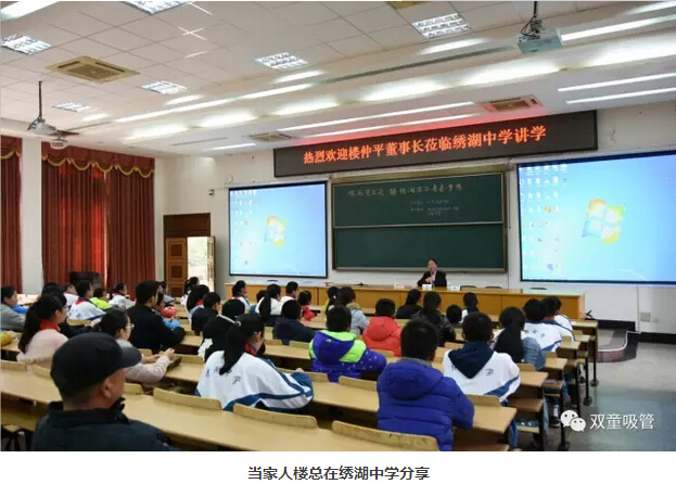 沒想到樓總的分享在繡湖中學(xué)掀起了一股熱潮,這不,幾位繡湖中學(xué)的學(xué)子專門以《雞毛飛上天》做了專題的社會實(shí)踐報(bào)告,榮獲了學(xué)校的第三名,并將代表學(xué)校參加市里的比賽呢!為此,上周六,繡湖中學(xué)的幾位參賽學(xué)子及家長代表來到“雙童”,和當(dāng)家人樓總進(jìn)行深入交流!