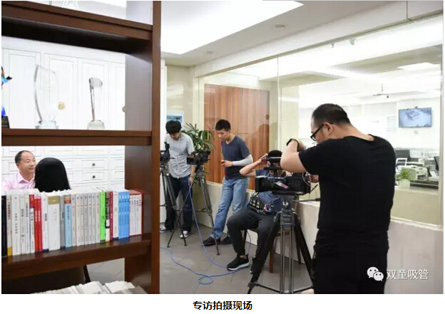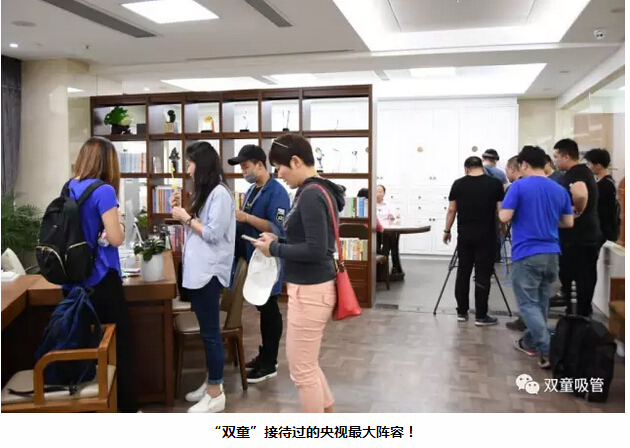 看看現(xiàn)場(chǎng)拍攝照片,二十多名拍攝記者、五臺(tái)攝像機(jī)分兩路行動(dòng),一路在辦公室做采訪對(duì)話,一路徑直前往車間拍攝生產(chǎn)畫面。連當(dāng)家人樓總都不禁感嘆:這可真是雙童接待過(guò)的央視最大陣容!