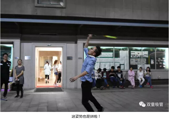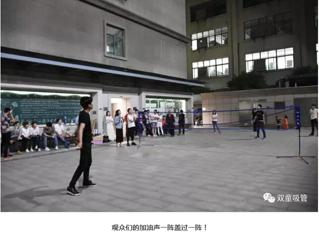 還沒開場,不少同學就來到現(xiàn)場熱身啦!選手之間默契配合,單打雙打花樣十足,完全停不下來,看的吸管妞都想上場一決勝負啦!