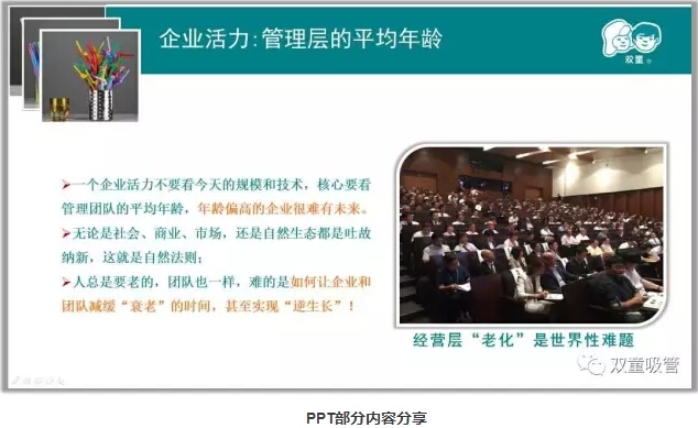 本次樓總的演講主題是《“雙童”團(tuán)隊(duì)的“涅槃重生”—淺談經(jīng)理人團(tuán)隊(duì)如何不被“老化”》課程。企業(yè)經(jīng)理人團(tuán)隊(duì)“老化”是許多傳統(tǒng)企業(yè)存在的問(wèn)題,其實(shí)這種“老化”的本身不在于生理層面的年齡問(wèn)題,而在于心理層面出現(xiàn)的“老化”問(wèn)題……下面妞就重點(diǎn)和大家來(lái)分享樓總的課程吧!
