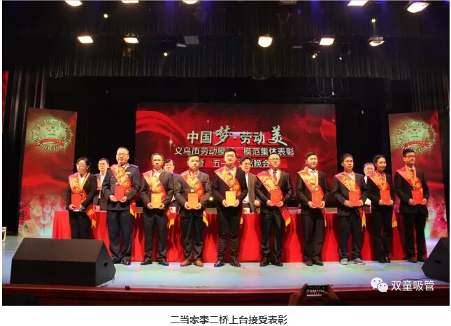 在義烏市長林毅發(fā)表講話之后,副市長施文臻宣讀了義烏市勞動模范、模范集體名單,各勞動模范及模范單位代表上臺接受表彰!這其中也包括了我們的二當(dāng)家李二橋呢!