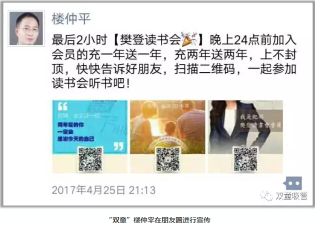 對此,“雙童”樓仲平表示,他非常高興可以影響這么多好友加入讀書會,因為正面影響他人是一件非常神圣的事情,一年投入365元,就可以學習到各類經典好書,不僅開闊了自己的視野,還提升了自身的認知水平,甚至有可能會改變自己的命運!