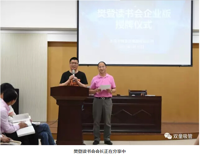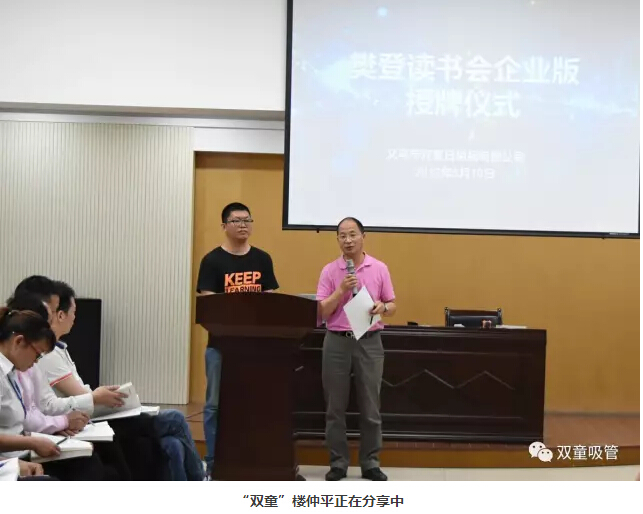 下面就是激動人心的簽約授牌儀式啦!樊登讀書會王旭飛會長以及雙童樓仲平現場進行樊登讀書會企業(yè)版的簽約授牌儀式。經過這次儀式,樊登讀書會企業(yè)版正式入駐雙童吸管!雙童樓仲平也現場祝福樊登讀書會企業(yè)版的入駐,給“雙童”這個學習型組織插上飛翔的翅膀,在今后的企業(yè)學習過程中可以事半功倍,更高效、更快樂地學習!