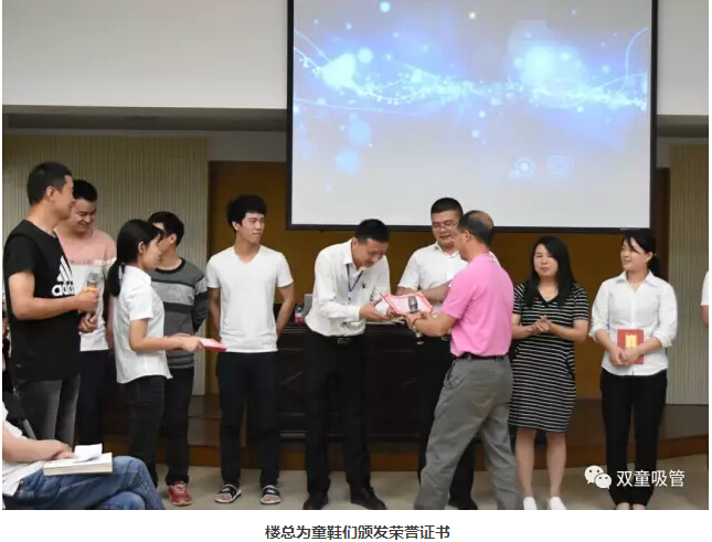 分享結(jié)束后,我們也現(xiàn)場評選出了最佳分享獎積極分享獎等獎項(xiàng),雙童當(dāng)家人樓仲平給童鞋們頒發(fā)了榮譽(yù)證書并合影留念。樓總也覺得這樣的學(xué)習(xí)方式更加開放生動,員工們也更加積極踴躍的進(jìn)行學(xué)習(xí),學(xué)習(xí)在雙童成為了快樂的代名詞!吸管妞也相信通過樊登讀書會企業(yè)版和學(xué)習(xí)會相結(jié)合,我們今后的分享會一定會更精彩!