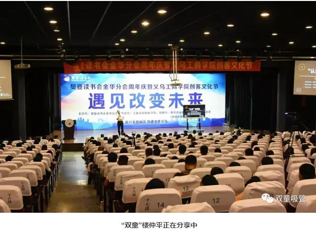 慶典上,樊登讀書會金華分會會長王旭飛進(jìn)行了致辭,義烏工商學(xué)院賈少華院長也作了“不讀書無成長”的主題分享,指導(dǎo)大家如何培養(yǎng)有學(xué)習(xí)力的孩子。同時,在頒獎環(huán)節(jié)中,“雙童”樓仲平和“雙童吸管”也分別獲得了“優(yōu)秀閱讀推廣人”和“優(yōu)秀企業(yè)讀書會”的榮譽(yù)稱號!