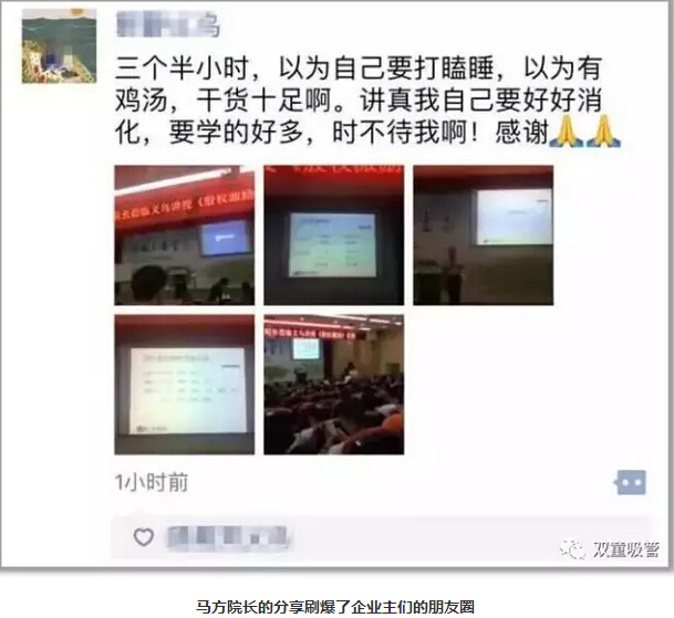 于是,此次活動(dòng)從最開(kāi)始的單個(gè)協(xié)會(huì)舉辦的內(nèi)部年會(huì)演變成了義烏宣傳部、義烏商務(wù)局、義烏貿(mào)促會(huì)以及六大行業(yè)協(xié)會(huì)共同舉辦的義烏市商城大講堂活動(dòng)!事實(shí)上,馬院長(zhǎng)十幾年來(lái)專注于股權(quán)激勵(lì)的研究和輔導(dǎo)實(shí)踐,正好對(duì)面臨二代傳承、與經(jīng)理人團(tuán)隊(duì)建立協(xié)同機(jī)制和契約機(jī)制等痛點(diǎn)的義烏企業(yè)主十分受用!下面吸管妞就帶大家一起來(lái)看看這堂讓義烏企業(yè)主們紛紛刷屏的課程吧!